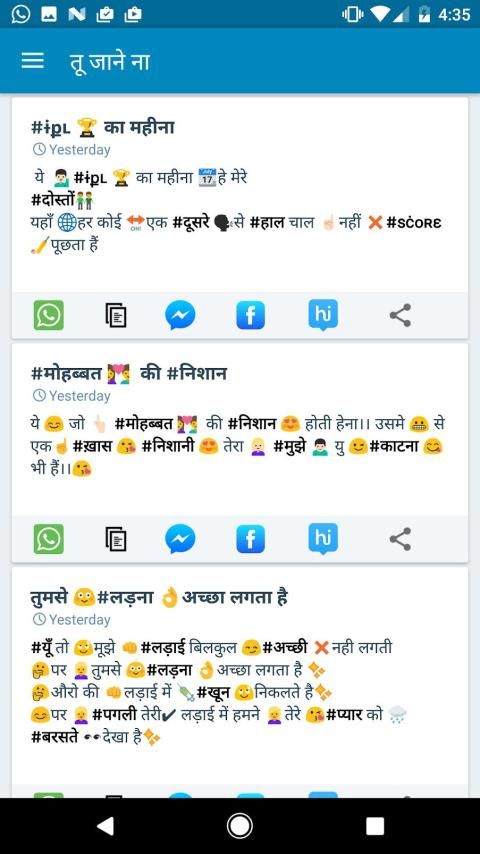 Every hours online hindi shayari, online hindi sms,jokes and online hindi status. Easy share on social media. Every hours new photo images updated. User can enjoy new updated status, sms, jokes and shayari.