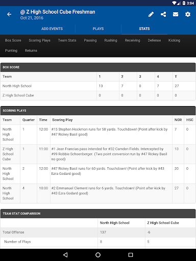 • आसान सांख्यिकी प्रविष्टि का उपयोग करने के लिए • सभी मानक फुटबॉल स्टेट श्रेणियों को ट्रैक करता है