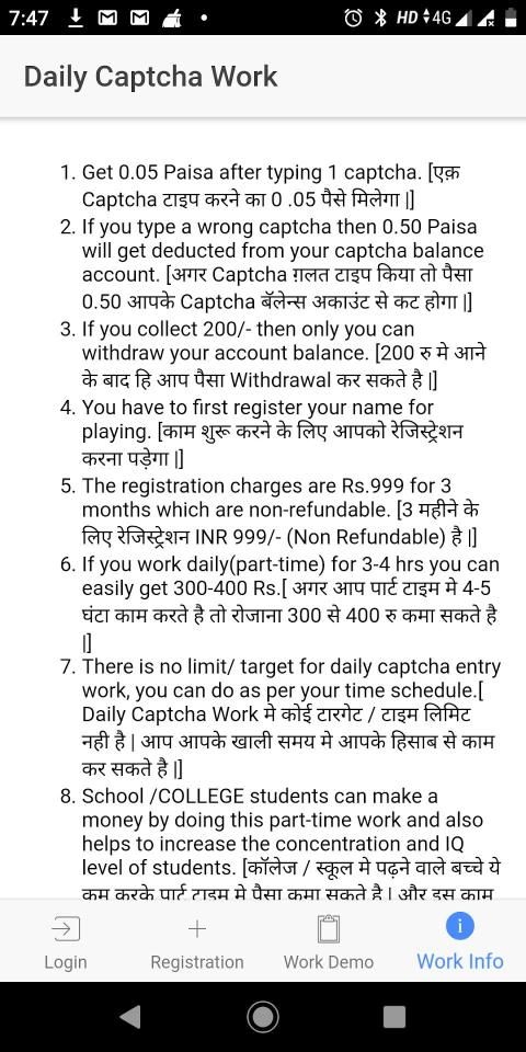 Daily Captcha Work is very easy to do and perform. You know that who easy work it’s. You know that today everyone is running behind digitation .do Be protected from digital information captcha is require in high demand for whole world. The captcha is requiring for the high protection. Keeping this in mind, we have started part time job .App of earning money (money making app) is made. This is for those how are using android. You can earn Rs. 300-500 money by spending 3-4 hours on your android mobile daily.