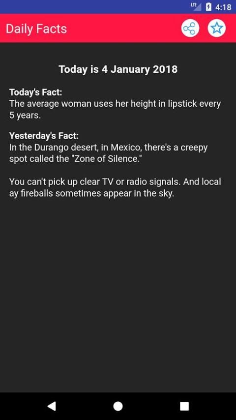 डेली तथ्य अनुप्रयोग विशेषताएं: