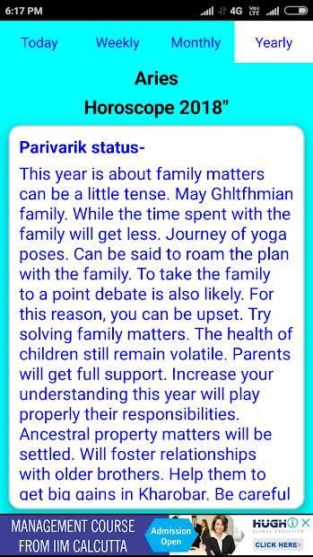 6.Zodiac compatibility: Ever wondered why you get along well with some but could be easily agitated by others? This is Horoscope doing its little trick. Whether with family, friends, co-workers, loved ones, or acquaintances, you'll see daily horoscope doing its magic by knowing personal things about you. Get ready to be amazed.