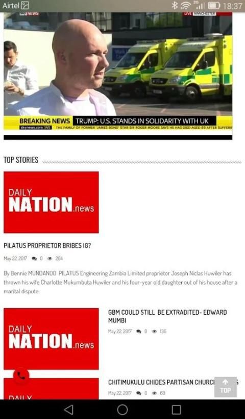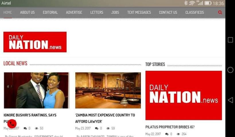 डेली नेशन समाचार एप्लिकेशन के साथ ही एंड्रॉयड उपकरणों के माध्यम से जाम्बिया स्थानीय समाचार के लिए उपयोग अंतरराष्ट्रीय समाचार देने के लिए बनाया गया है।