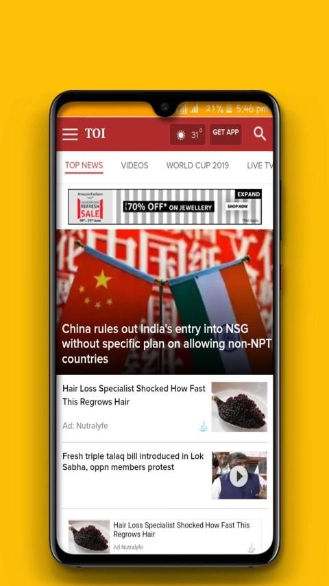 अब आप समय-समय पर खुद को अपडेट रख सकते हैं और केवल एक समाचार ऐप डाउनलोड करके लगभग सभी अखबारों पर तथ्यों को सर्फ करके एक खबर से संबंधित विवरण प्राप्त कर सकते हैं। वास्तव में, यह ऐप आपको भारत से सभी समाचारों के लिए एक ही स्रोत लाता है: दैनिक समाचार, राजनीति , क्षेत्रीय, खेल, मनोरंजन और बॉलीवुड, तकनीक समाचार, और अन्य।