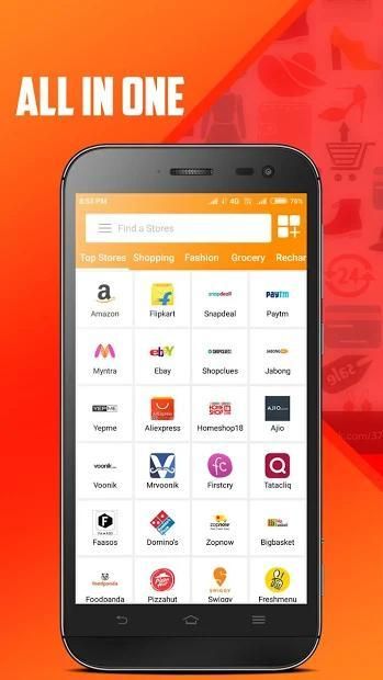 भारत में ऑनलाइन शॉपिंग ऐप: - जंगल, कोव्स, जोवी, इन्फिबैम, अमेज़ॅन, पेटीएम, मित्रा, फ्लिपकार्ट, स्नैपडील, शॉपक्लूस, फर्स्टक्रॉ, ब्लूस्टोन, इनॉक्स, यात्रा, गोइबोबो, कारदेको, ज़िगहेल्स, मैजिकबिक्स, पेपरफ्री, बेबीओ, गोपीसा