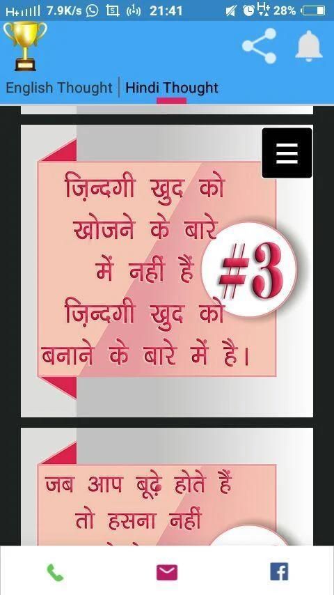 सभी दैनिक विचारों पाठ में लेकिन चित्र में नहीं हैं। आप छवि को डाउनलोड करने और उन्हें अपने वॉलपेपर के रूप में सेट कर सकते हैं। तुम भी फेसबुक, WhatsApp या अन्य सामाजिक मीडिया के लिए दैनिक सोचा ऐप्लिकेशन से सीधे उन्हें भेज सकते हैं।