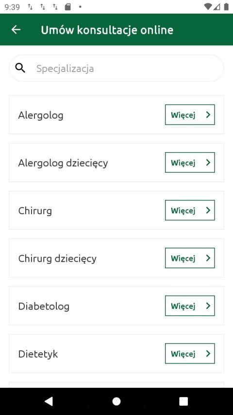 alergologa (także dziecięcego), chirurga dziecięcego, diabetologa, dietetyka, endokrynologa (także dziecięcego), gastrologa, ginekologa, hepatologa, internisty, kardiologa, laryngologa (także dziecięcego), lekarza chorób zakaźnych, lekarza medycyny podróży, nefrologa, neonatologa, okulisty, ortopedy, pediatry, psychiatry, psychologa (także dziecięcego), psychoterapeuty, pulmonologa, reumatologa, urologa i innych.