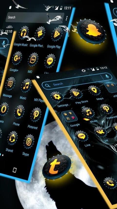 • Dark Wolf Theme included many HD customized Icons of popular apps, social app like (Snapchat,imo,viber,twitter etc) System app icons.