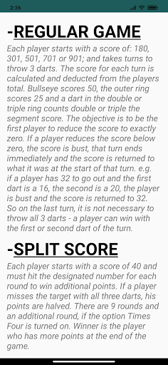 डार्ट्स बजाते समय पब या घर पर अपना स्कोर लिखने की आवश्यकता नहीं है। बड़ी संख्याओं को गिनने और घटाने की आवश्यकता नहीं है। यहां एक ऐप है जो आपको सभी के लिए स्कोर ट्रैक करने देता है। इसे इंस्टॉल करें और बस खेलें।