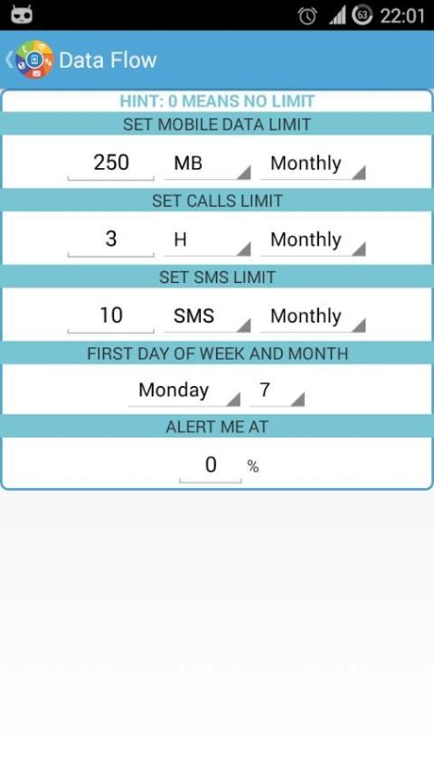 * Monitor Calls and SMS usage