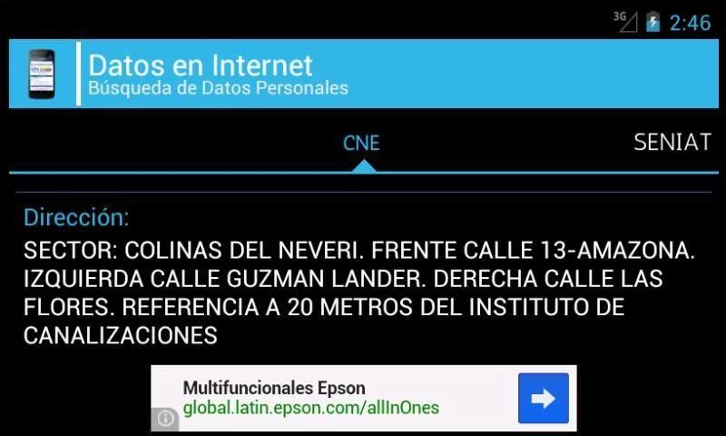 यह एक आवेदन में जानकारी प्राप्त करने के लिए हमें मदद करता है कि, दोनों सीएनई (डेटा निर्वाचक) और कई अन्य लोगों, या तो एक रिकार्ड संख्या दी जाती है। यह संकीर्ण है तो यह (वेनेजुएला के Bolivarian गणराज्य की, भले ही उपकरण ग्रह पर कहीं भी इस्तेमाल किया जा सकता है) के लिए वेनेजुएला के लोगों से काम करता है।