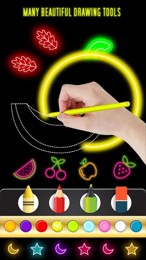 ⭐ Glow draw Fruits art is very easy to use and absolutely FREE: no paid content, all for FREE!