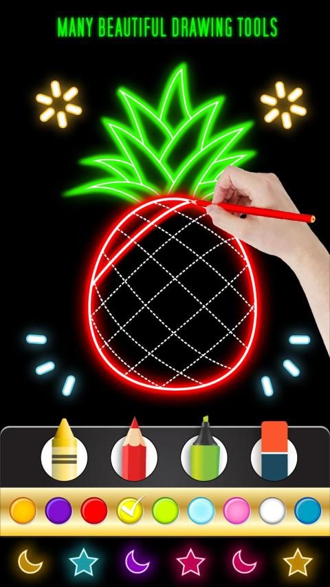 ⭐ Learn to draw a glowing Fruits for light is awesome, cool and interesting drawing game for teens and adults!
