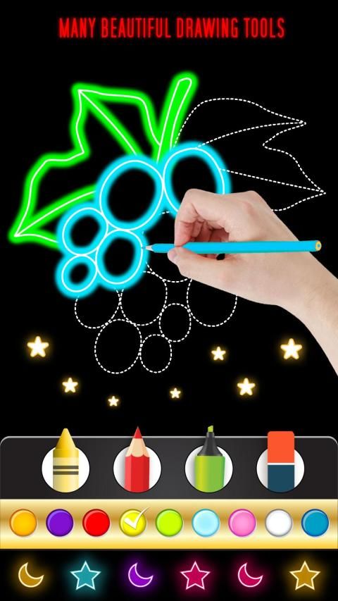 ⭐ Glow drawing art with best glow light drawing and draw glow fruits in the dark with amazing glow effect for Magic colors!