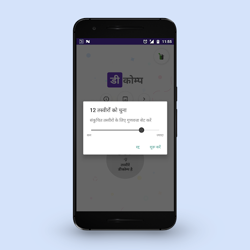 Decomp आपके बड़े आकार के वीडियो को छोटे आकार के वीडियो में कंप्रेस भी कर सकता है, साथ ही एक साधारण 2-चरणीय प्रक्रिया में अपनी इच्छित गुणवत्ता बनाए रख सकता है। आपके संपीड़ित वीडियो डीकॉम्प की अंतर्निर्मित गैलरी में सहेजे जाएंगे।