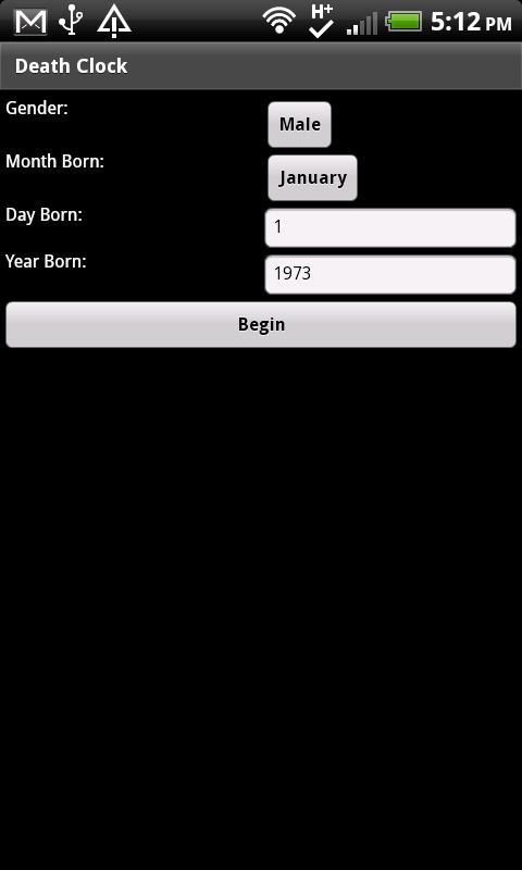 The Death Clock is a simple application that estimates your day of death. Along with giving you a "death day", it will count down the number of seconds you have left to live.