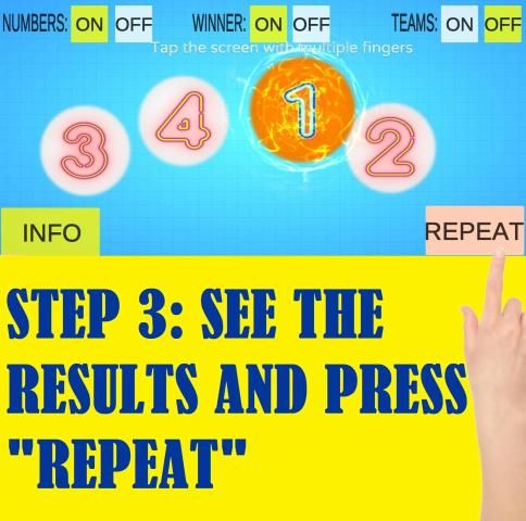 MAXIMUM NUMBER OF PLAYERS FOR THIS TAP ROULETTE IS 9, BUT IT MAY BE LESS, DEPENDING ON YOUR DEVICE. WHEN YOU WANT TO REPEAT JUST PRESS "REPEAT" AND PUT YOUR FINGERS AGAIN.