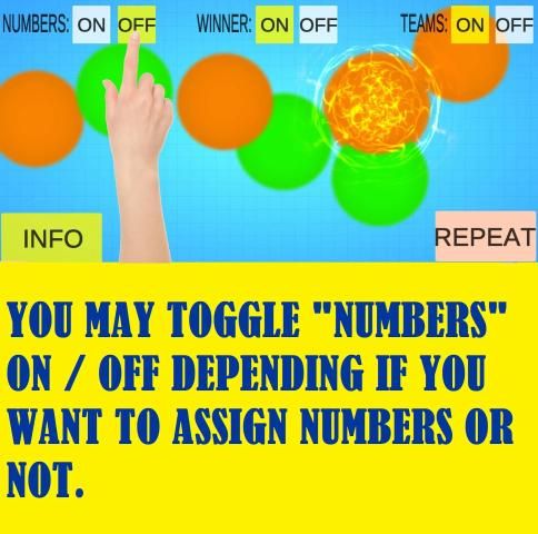 ★ You can toggle winner, numbers and teams and combine them as you wish