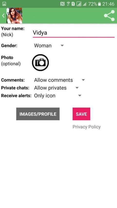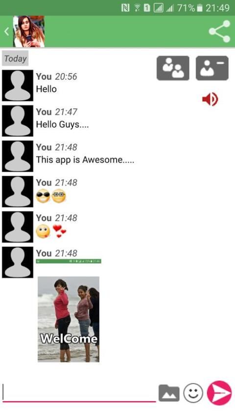 दुनिया भर में ऑनलाइन पीपुल्स के हजार के साथ चैट करें !!! इस एप्लिकेशन को पूरी तरह से उपयोग कर सकते है। इस आवेदन में आप पूरा कर सकते हैं नए लोगों से मित्रता बनाने के लिए और उन लोगों के साथ मजाक किया है पूरी तरह से स्वतंत्र निजी तौर पर किसी भी प्रोफ़ाइल के लिए पाठ और छवियों, संपर्क भेजने और नए दोस्त बनाने, लेआउट बहुत ही सरल और विभिन्न वर्गों के साथ प्रयोग करने में आसान है। स्थापित करें और जाओ ...