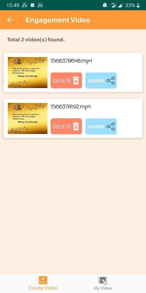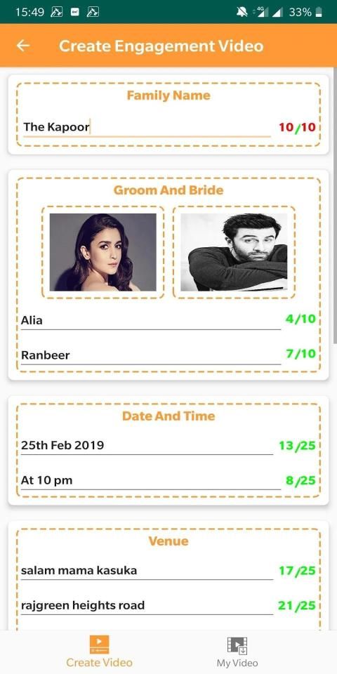 Digital engagement invitation HD video creating app with photo / quotes