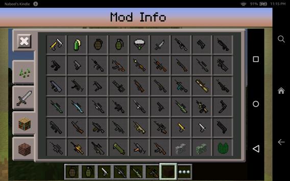 Ak47s, रॉकेट लॉन्चर्स, ग्रेनेड और ग्लॉक मौजूदा बंदूकें में से कुछ हैं जो आज Minecraft pe के लिए सबसे उन्नत हथियार मोड है।