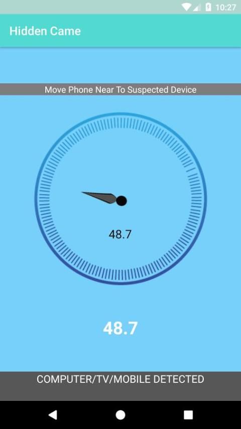 यह पता लगाने के छिपे हुए निगरानी कैमरा ऐप उपकरण के चारों ओर आकर्षक लेंस आंदोलन टूट जाती है। घटना में है कि आकर्षक कार्रवाई कैमरा की तरह प्रतीत होता है, इस एप्लिकेशन को बीप और लक्ष्य है कि आप अतिरिक्त अनुसंधान छिपा निगरानी कैमरा एप्लिकेशन का पता लगा सकते भी कंप्यूटर, लैपटॉप, मोबाइल की तरह इलेक्ट्रॉनिक उपकरणों खोज के लिए इस्तेमाल किया जा सकता के साथ आप के लिए चेतावनी बढ़ा देंगे फ़ोन, टीवी, सेंसर 몰카, 몰래 카메라। छिपा निगरानी कैमरा apptries का पता लगाने अपने फोन के चुंबकीय सेंसर का उपयोग कर जासूसी उपकरणों का पता लगाने के। चुंबकीय गतिविधि एक कैमरा के समान लगता है, एप्लिकेशन एक अलार्म उत्पन्न होगा, तो आप आगे की जांच और छिपे हुए कैमरों की खोज कर सकते हैं।
