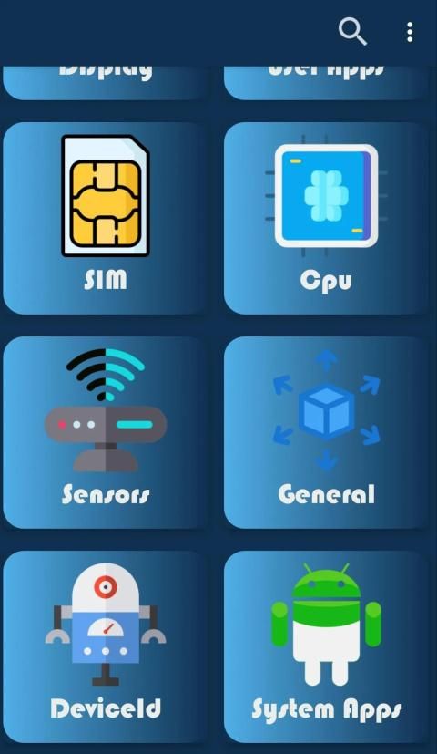 विस्तार से डिवाइस में उपलब्ध सभी सेंसर की सूची।