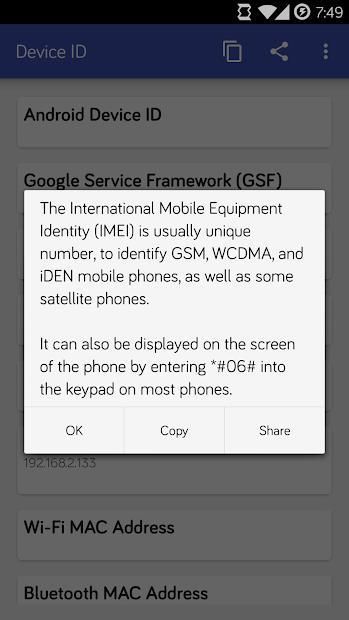 सरल अनुप्रयोग आपको आसानी से कॉपी और अपने मोबाइल डिवाइस की आईडी साझा की अनुमति देते हैं कि आपके डिवाइस जानकारी / आईडी / स्थानीय आईपी / मैक पते और सीरियल पाने के लिए।