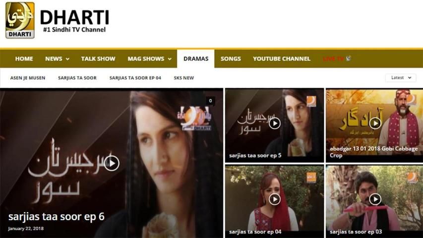 Dharti TV Television Network (Dharti TV) is the first private Sindhi TV channel. This Channel is general entertainment Channel which covers Dramas, News, Music and Current Affairs.