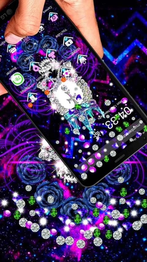 निजीकरण के लिए ब्लू गुलाब और चमकदार हीरे से सजाया गया है और अपने फोन को अनुकूलित करें। यह isunique और new है। डायमंड स्कल ग्रेविटी थीम स्मूथ और फास्ट चलेगी।