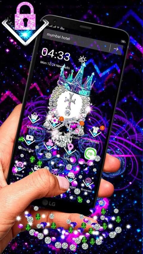 आईट्स आइकनों को हीरे से सजाया जाता है और आप हीरे के तत्वों को हिला सकते हैं। यह डरावनी नहीं लग रही है, इसलिए आप इसे बिना किसी डर के डाउनलोड कर सकते हैं। यह बहुत ही दिलचस्प राजा की खोपड़ी है।