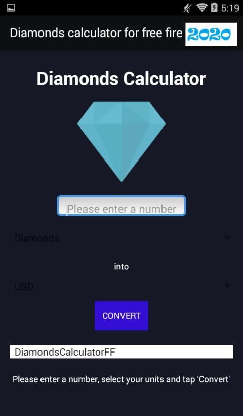 Diamonds Calculator for FF 2020 helps you to calculate the number of diamonds you need to buy in usd.