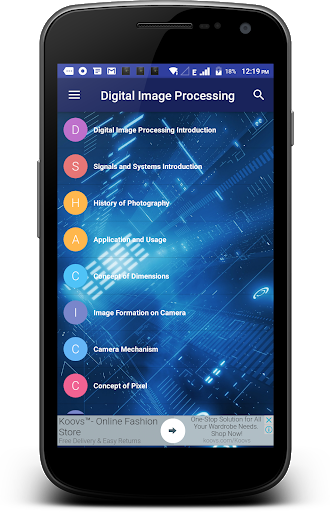 ► This App gives you the knowledge of widely used methods and procedures for interpreting digital images for image enhancement and restoration and performing operations on images such as (blurring , zooming , sharpening , edge detection , e.t.c). It also focuses on the understanding of how the human vision works. How do human eye visualize so many things , and how do brain interpret those images? The App also covers some of the important concepts of signals and systems such as (Sampling , Quantization , Convolution , Frequency domain analysis e.t.c).✦