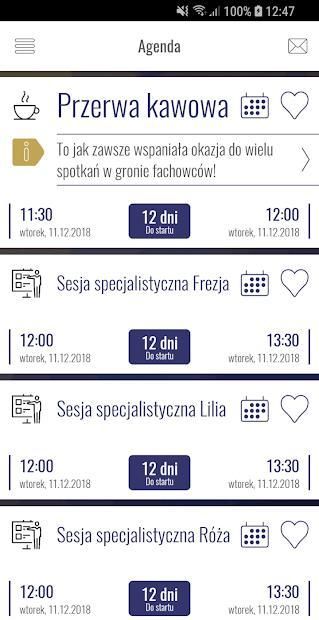 - Agenda - stwórz własną ścieżkę klikając serduszko przeglądając listę prelekcji, innych wydarzeń lub ścieżek tematycznych,