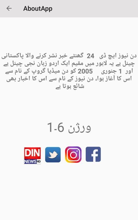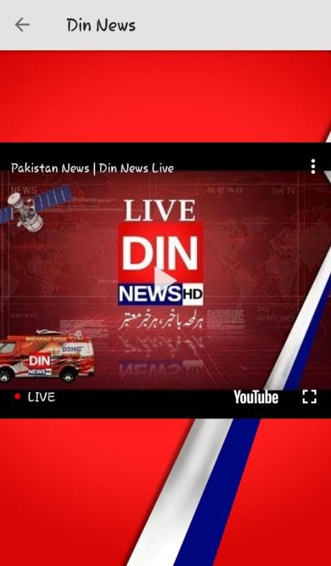 Din News HD is Pakistan 24-hour working news channel. It is an Urdu language private channel based in Lahore. It started its broadcasting on January 1, 2005, running by the Din Media Group. They are also publisher Din Newspaper. Din News is becoming the Pakistan's number : 1 News Channel . In this mobile application we try to cover all aspect of News. If you are hungry for news then you are at right place. We are offering ( Pakistani, International, Sports, Entertainment, Politics, Business and Health Care).