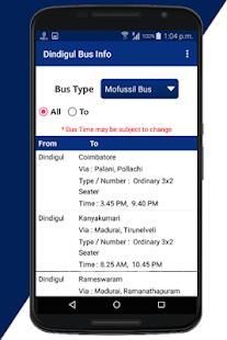 This app provide all information about Dindigul Mofussil bus and Town bus.