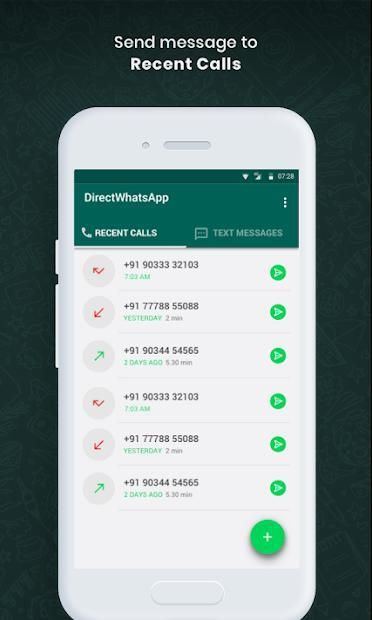 Direct WhatsApp is a boon that seamlessly lets you send a WhatsApp message to any unknown number without the need to save it. Our advanced features even lets you choose the number / contact from your recent call history and sms logs, all without never leaving the app.