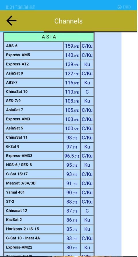 In This Feature The App Shows All The Channels List According To The Satellites List