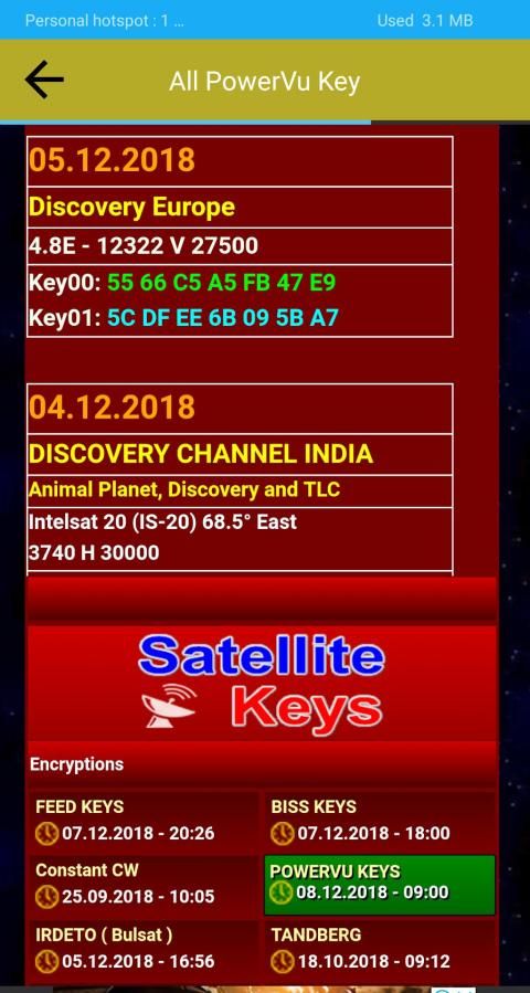 All Satellites Dish Channel PowerVu Keys New And Updated;