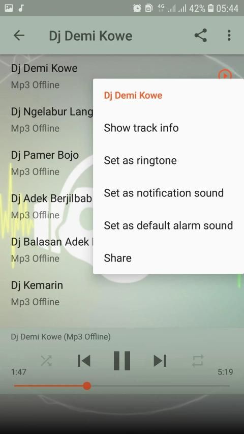 semua lagu dalam aplikasi ini kami sajikan secara offline, jadi anda bisa menikmatinya kapan saja dan dimana saja, tanpa ribet, tanpa buffering. selain itu anda lagu-lagu nya ada bisa gunakan sebagai nada ringtone, nada alarm dan juga bisa berbagi dengan teman anda.