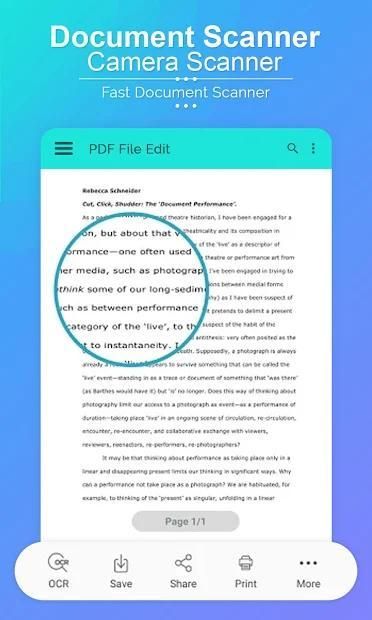 टैपस्केनर उच्च गुणवत्ता वाले पीडीएफ आउटपुट के साथ एक साधारण कैमरा स्कैनर है।