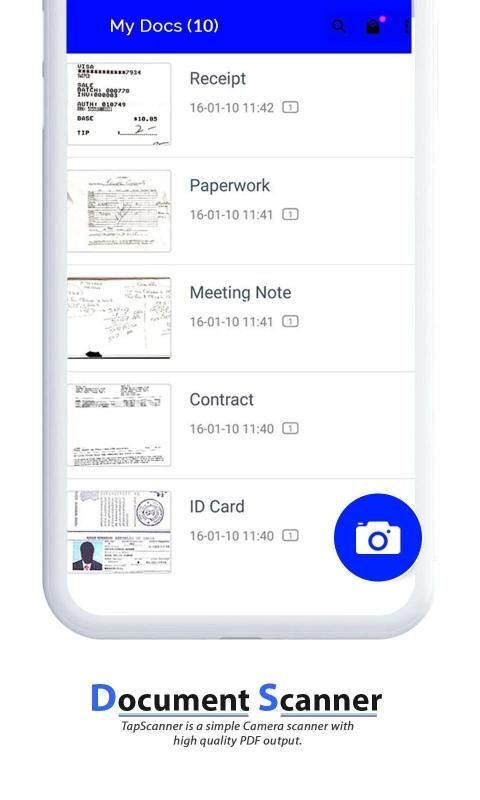 Get the best Document scanner with latest and updated features. The app converts your mobile device into a real Scanner which helps your scan and save your important Documents. You can scan documents like ID Proofs, News papers, Pages, Invoices, receipts, Visiting cards and much more all in black n white or color.