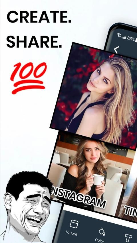 हम ओपरा के डॉली पार्टन चैलेंज मेकर में से कुछ के लिए आंशिक हैं। आप सीधे Instagram में एक कोलाज भी बना सकते हैं। ऐसा करने के लिए, छवि जोड़ने के लिए धन चिह्न पर क्लिक करें। आपकी लाइब्रेरी दिखाई देने के बाद, लेआउट बटन पर क्लिक करें। इंस्टाग्राम आपसे तब पूछेगा कि क्या आप अपनी तस्वीरों को संयोजित करना चाहते हैं। प्रक्रिया शुरू करने के लिए लेआउट बनाएँ पर क्लिक करें।