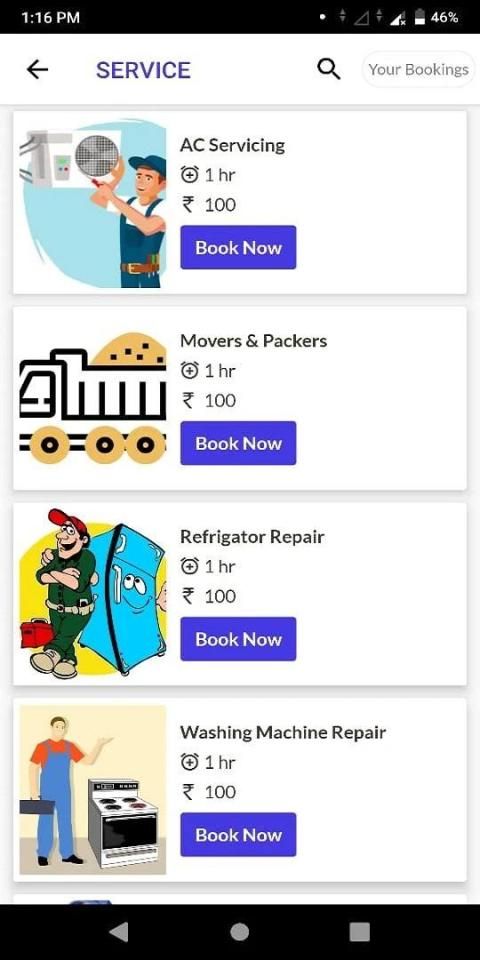 Choose from over 20+ services and book home services on the app based on pre-approved prices. A trusted service provider will be sent to your home at the time slot selected.
