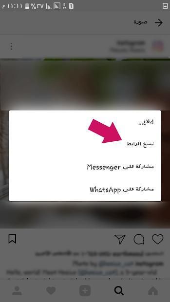 1- اختر نسخ الرابط (copy share url) للصورة او الفيديو من انستقرام.