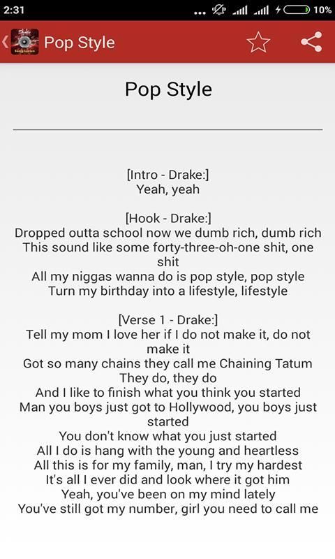 9Apps is your first choice to download apps. 20,000+ users downloaded Drake Song Lyrics latest version on 9Apps for free every week! In addition, the latest version of the app has updated a lot of features. This hot app was released on 2017-04-12. I believe that if you are an android apps lover, you would not miss it.