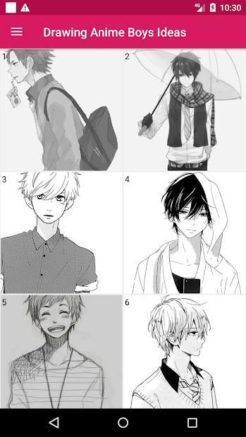 Drawing Simple Anime - Style male characters can be a bit more challenging than drawing female characters because there are usually more choices you can make. But the basic approach is the same. WIt is very hard for beginners to find the tutorials. This application includes ideas of anime boy cool as your reference when drawing your own character.