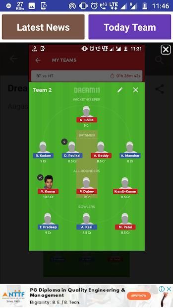 Daily Update Base Application... Daily Get News For Making Team... Dream11 prediction app Today Help And Tips For Making Team selection best dream 11 prediction app