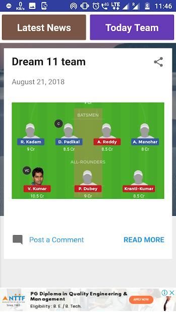 Have you ever read one of those reviews about a app? 20,000+ users downloaded Dream 11 Team Daily latest version on 9Apps for free every week! It is an excellent app and the fact it is! This hot app was released on 2018-08-23. I believe that if you are an android apps lover, you would not miss it.