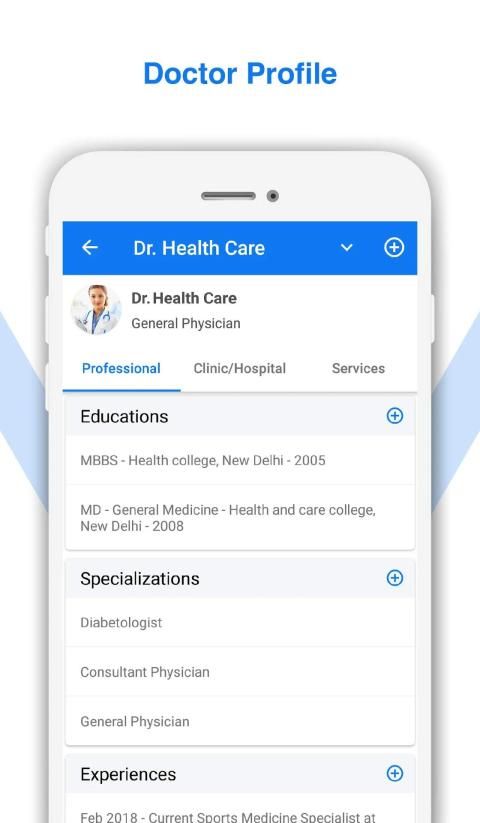 Doctor can built profile acquaintance by updating Education, Registation, Experince, Services, Memebership, Publications and many more technical details.