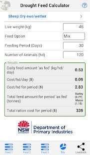 The Drought Feed Calculator is an essential tool for sheep and cattle producers dealing with drought and dry seasons. It enables busy farmers to make informed decisions and save money. Farmers in any location can easily and quickly determine the minimum feed requirement for a range of animals with different nutritional needs.